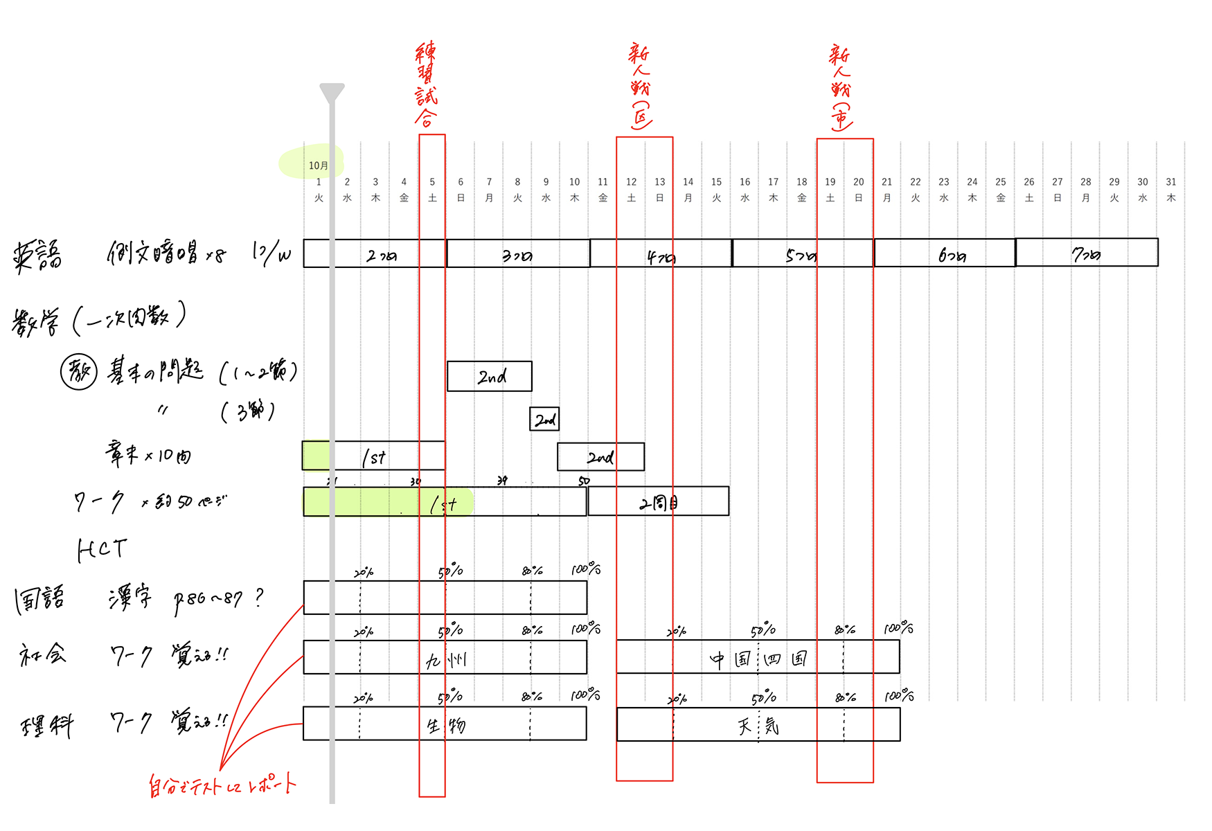 ・数学のどの単元をいつまでに仕上げるのか